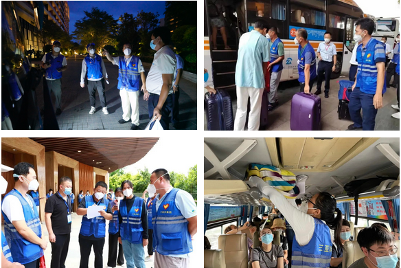 三亚旅文集团志愿者一面召开滞留游客情绪安抚并协调解决游客诉求,一面在各包点酒店全力推进滞留旅客返程转运工作,有序召开返程游客风险排查、对接省大数据局、航空公司确定游客购买机票和登机资格,确认航班航次和时间,快速组建航班,对接交通部门安排转运车辆和返程航班等各环节工作。
