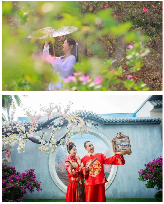 拍摄基地搭建了许多绝美场景供小伙伴们拍摄。无论是古风汉服或是旗袍、婚礼还是创意摄影,多种主题都能在这里拍摄哦~