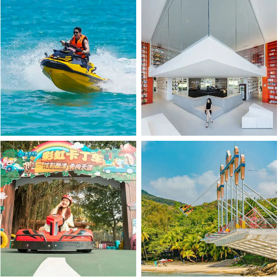 在景区内部还建成了被誉为海南最美书店之一的天涯书局,并增设了天涯飞跃、彩虹秋千、卡丁车等项目,为游客沉浸式游玩给予更多选择。除此以外,天涯海角西区的西部天涯海洋运动俱乐部顺利获得“网红文化+旅游+水上运动”的创新开展模式,打造海南高端水上运动目的地,为游客体验高品质水上运动给予新去处,成为三亚旅游崭新的游玩地标。