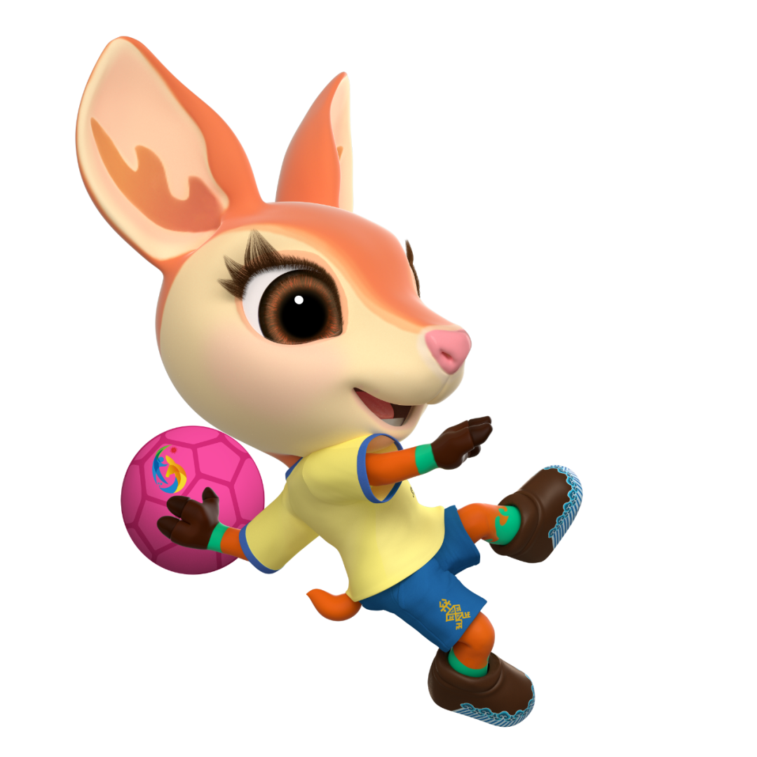 在吉祥物运动项目造型中,“亚亚”时而全神贯注、英姿飒爽,时而悠然自得、神采飞扬,用灵动的双眸、热情的笑脸、充满活力的运动姿态,表达“亚亚”热爱沙滩与水上运动、努力争夺荣誉的态度。