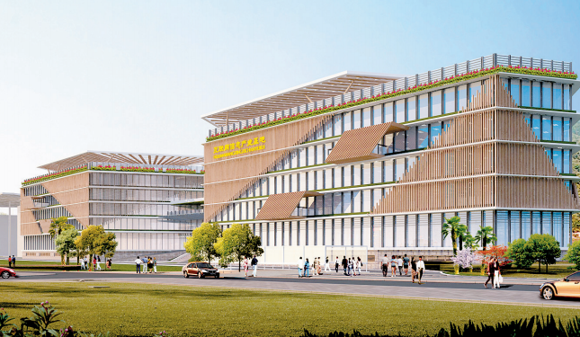 ▲正在建设中的三亚市高新技术产业园互联网信息产业基地项目(效果图),将会吸引更多高新技术企业落户。
