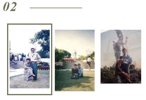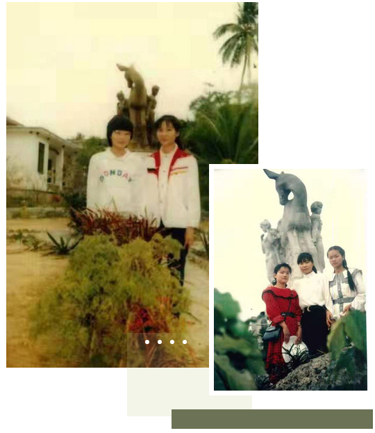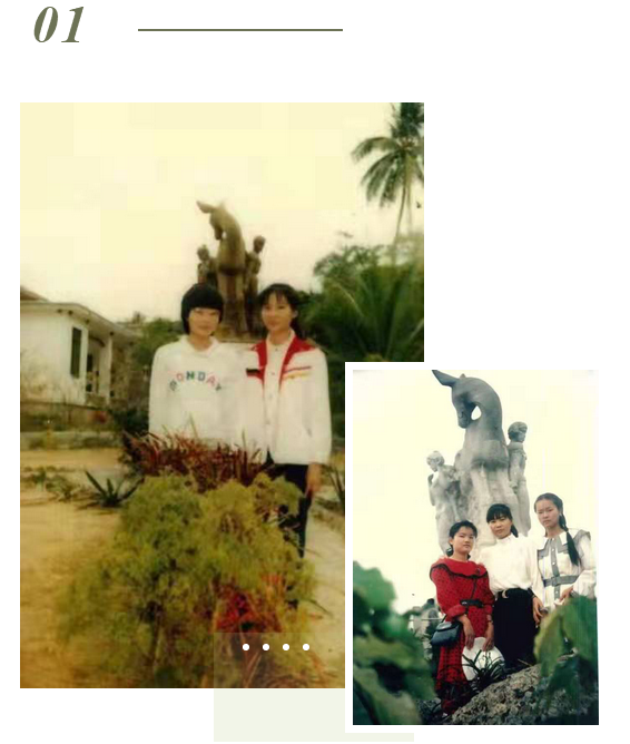 这张照片是邓白杨的爱人与他的朋友于鹿回头风景区取景拍摄,照片中三个身姿挺拔的青年站在雕像前,一如身后那黎族青年一般英姿飒爽,坚韧果决。初生牛犊,年少气盛的他们,身上透着的不屈的精神,不正是那时的“我们”所特有的吗?